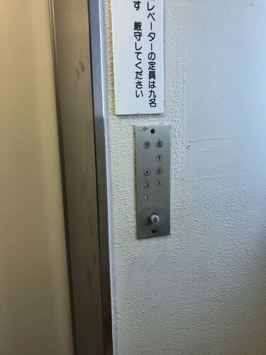今回は、神保町駅近くにある新A形エレベータを紹介します。 このビルの一階には、コンビニが入居しています。 珍しく2階始まりです。 乗り場ボタン。A形エレベータ標準のものです。 この上にはカゴ内を見ることができるモニターがあります。 操作盤。 銘板の…